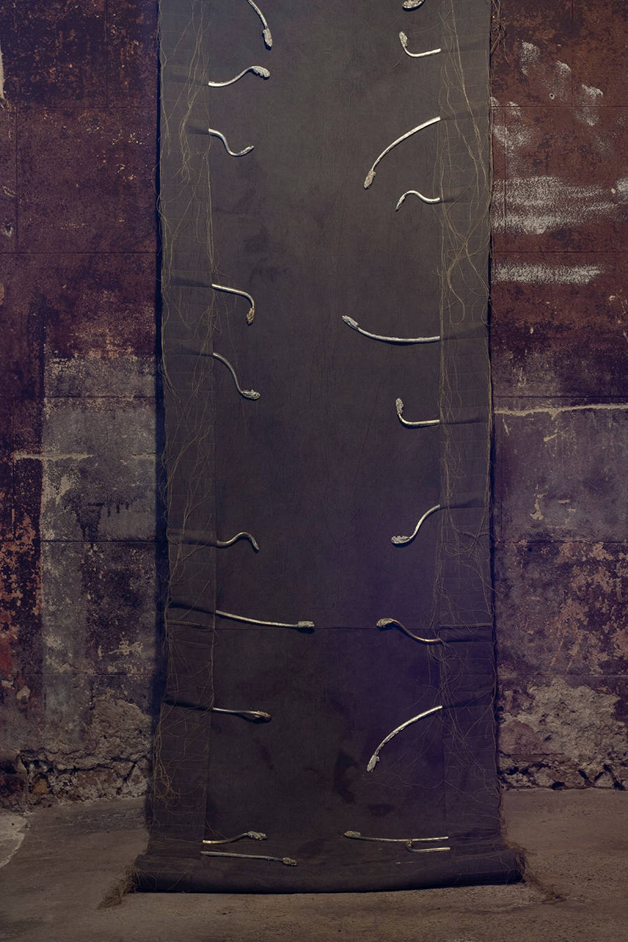 For the exhibition Plant Communitas, Hughes worked with folklore that revolves around the bracken fern. For hundreds of years humans could find no trace of how ferns reproduced, and this dark and interesting gap in our knowledge became a gathering point for meaning, powers and practices, including beliefs about invisibility.