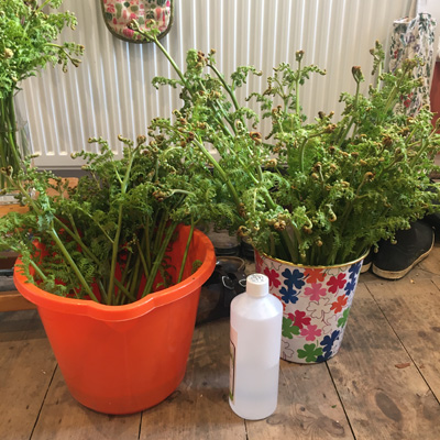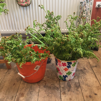Medium: preserved bracken, glazed ceramic, garden mullein plants