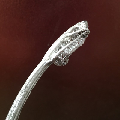 For 'Dark Fernland' Hughes cast pewter forms made by ferns that fail to unfurl, turning back in on themselves towards the earth. Dark Fernland is part of a body of work exploring the familiar and yet estranged relationship we have with these ancient and prolific ferns.
