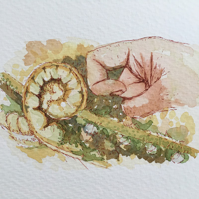 Hughes has worked with metal, foraged plants, textiles, ceramic and mixed media to create an installation that brings together elements of these gathering practices and beliefs. In the process, Hughes invites us to consider how these ideas tell us as much about being human as they do about being ‘fern’.