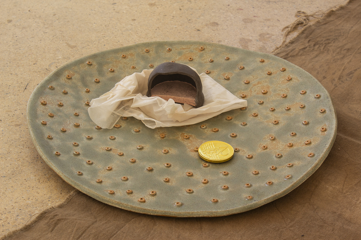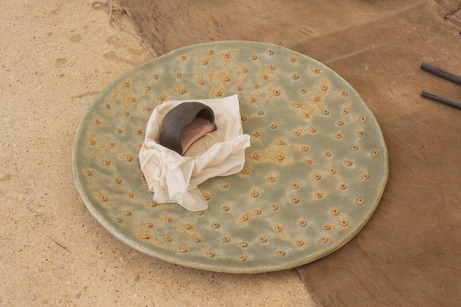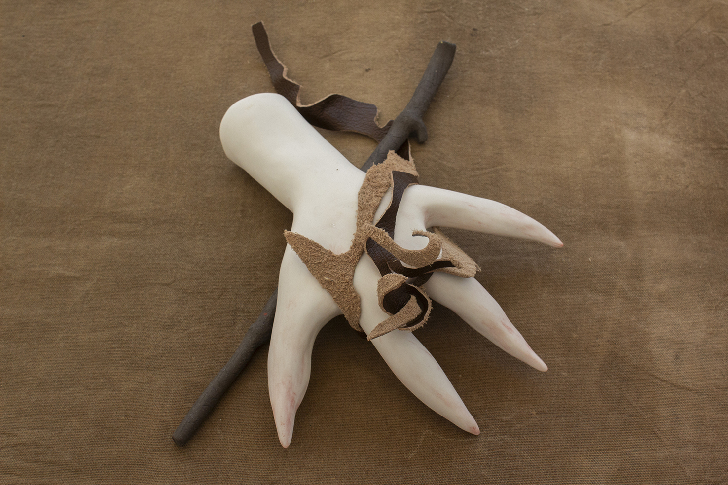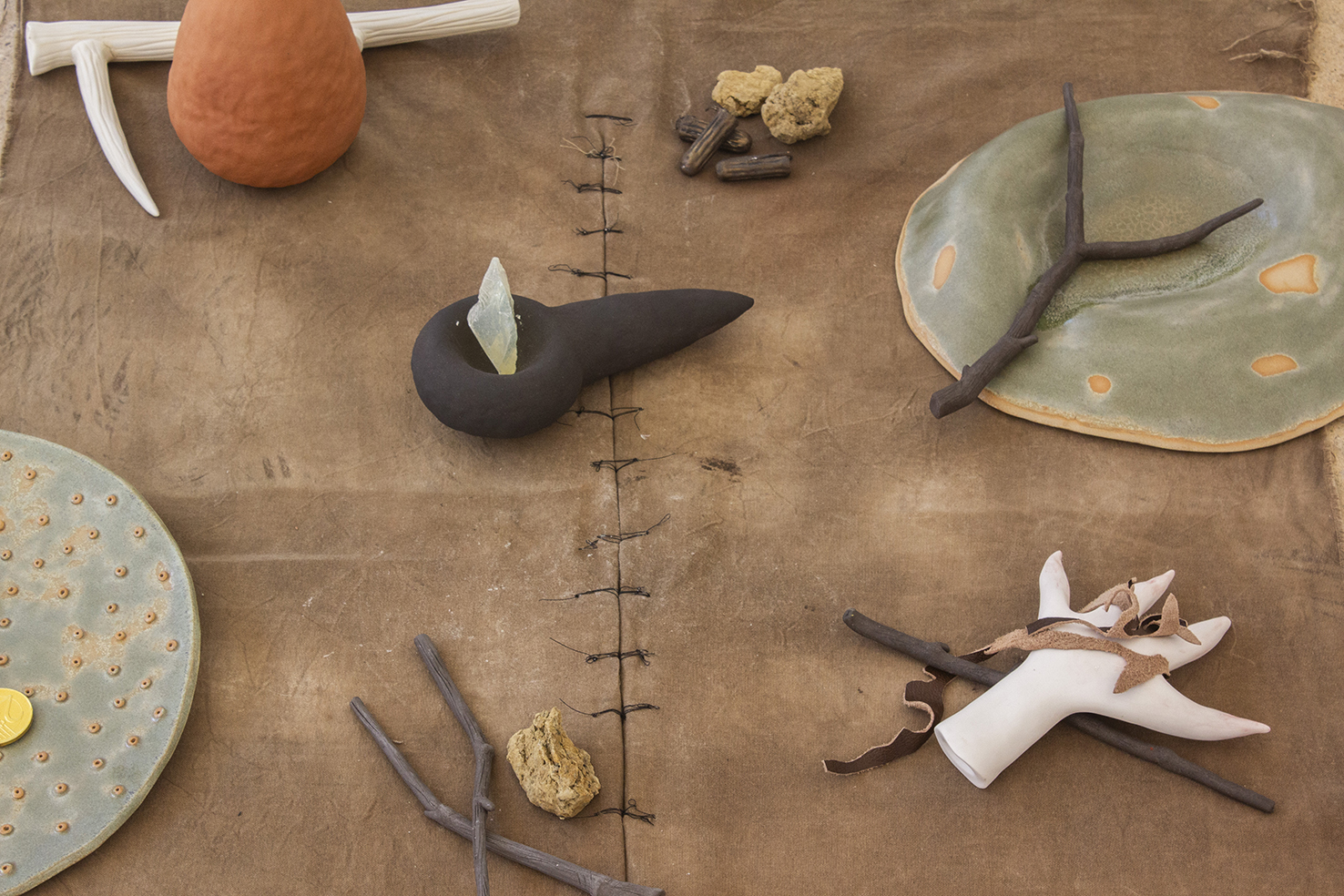 Medium: fired and glazed porcelain and earthenware, oil paint, leather, unfired clay, bioplastic